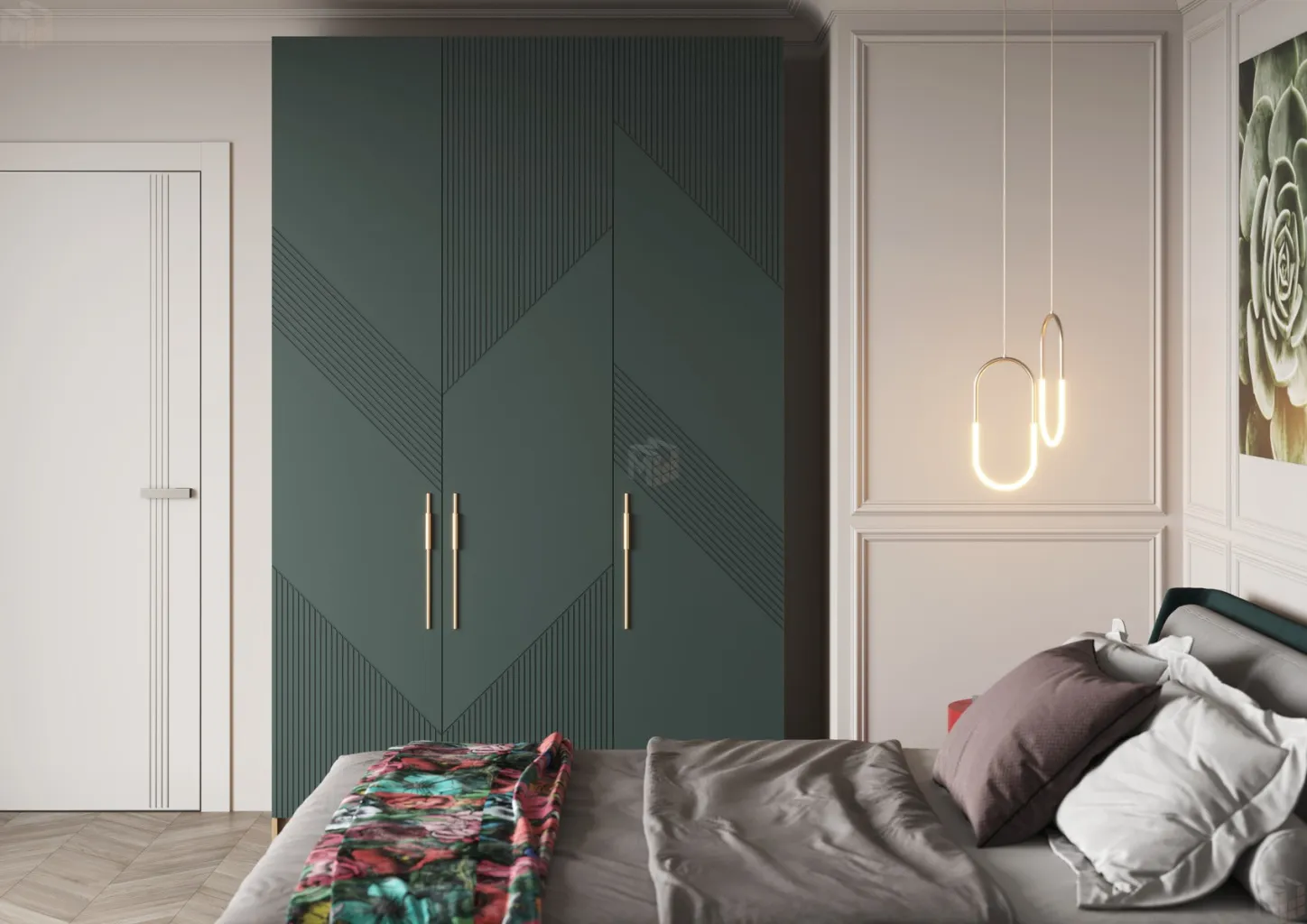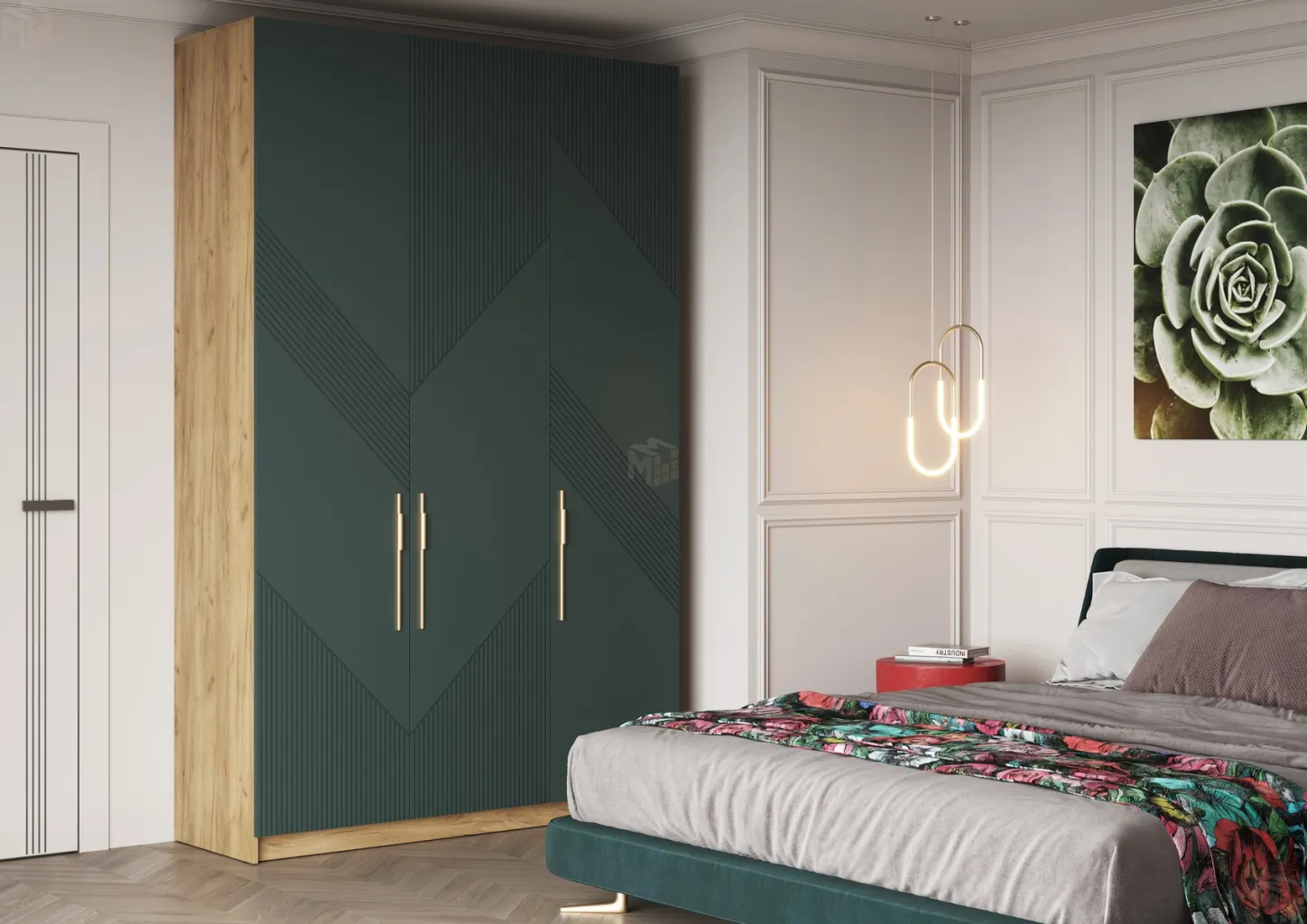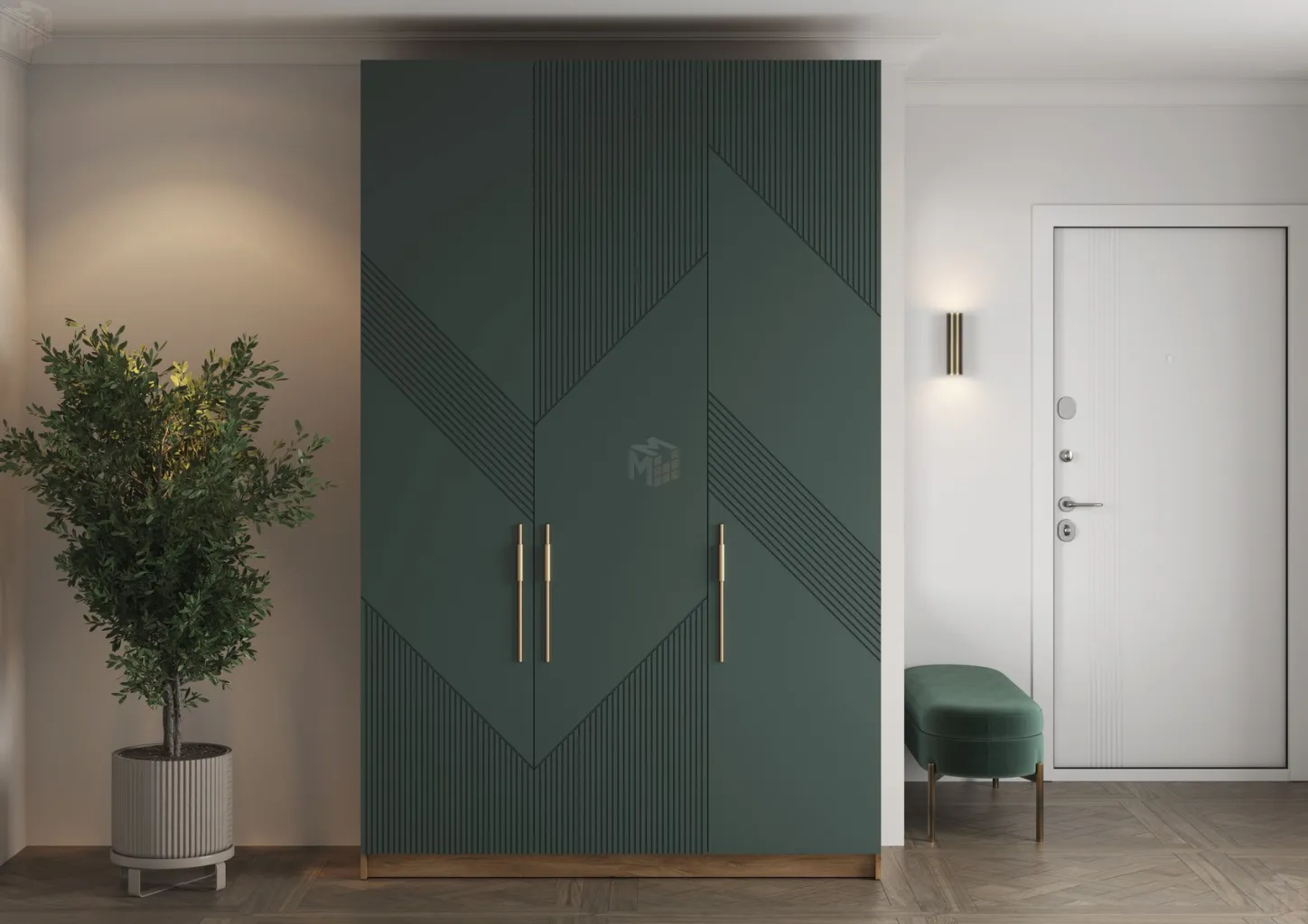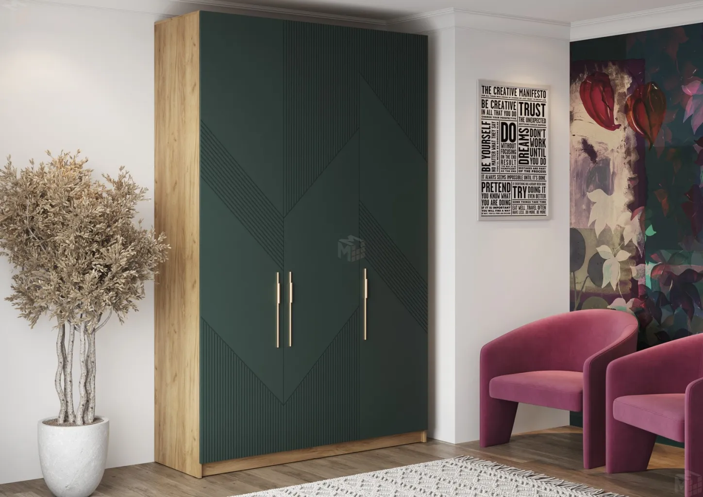 - Фасады изготовлены из МДФ с уникальной диагональной фрезеровкой, что придает шкафу элегантный вид.