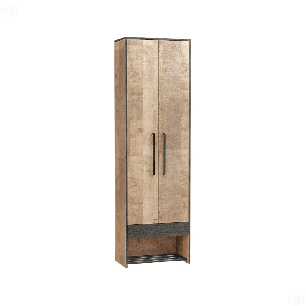 Шкаф для одежды Трувор 13.328.02 поможет создать приветливую и благоприятную атмосферу, которая с порога будет окутывать теплом. За двумя распашными дверьми находится выдвижная штанга для вешалок-плечиков с верхней одеждой, а антресольная полка пригодится для головных уборов и прочих аксессуаров. Нижняя трубчатая полка предназначена для размещения обуви, а небольшой выдвижной ящик пригодится для различных аксессуаров, косметики для обуви и прочих мелких предметов. Индустриальная мебель Трувор выполнена в стиле лофт.