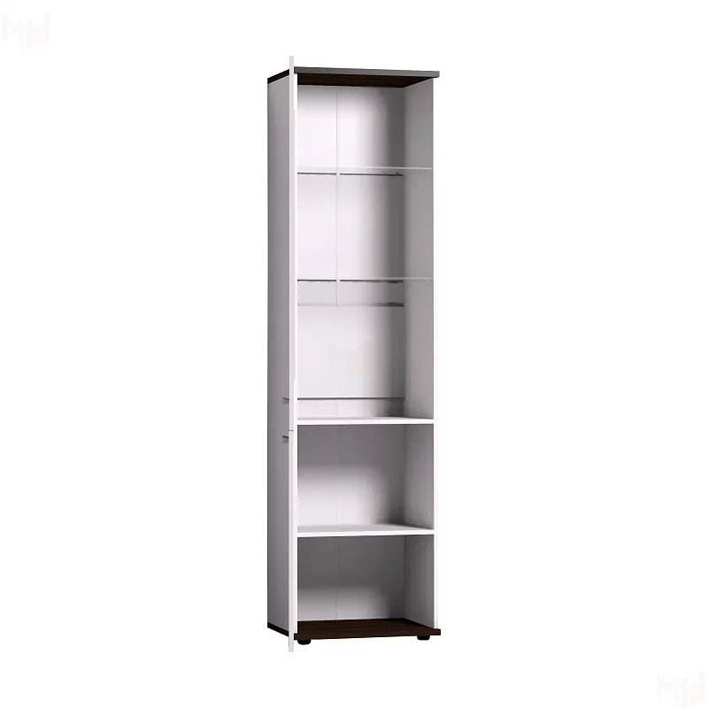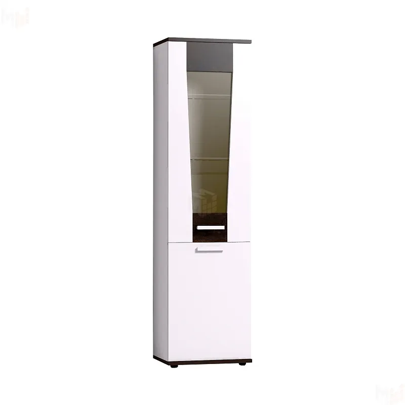 Шкаф для посуды Норвуд 13- этот модуль создан для красивой посуды, хрупких сувениров. Высокий и узкий шкаф-пенал будет уместен в гостиной любых размеров. Фигурный фасад верхней витрины эффектно совмещает в себе тонированное стекло, ЛДСП и контрастную вставку в цвете Орех Шоколадный. Стеклянные полки из прозрачного стекла толщиной 6 мм. Подсветка которую можно докупить отдельно будет приятно подсвечивать посуду в витрине. В нижнюю закрытую тумбу посудного шкафа можно убрать вещи, не предназначенные для посторонних глаз. Фасады шкафа перенавешиваются на левую и правую сторону.