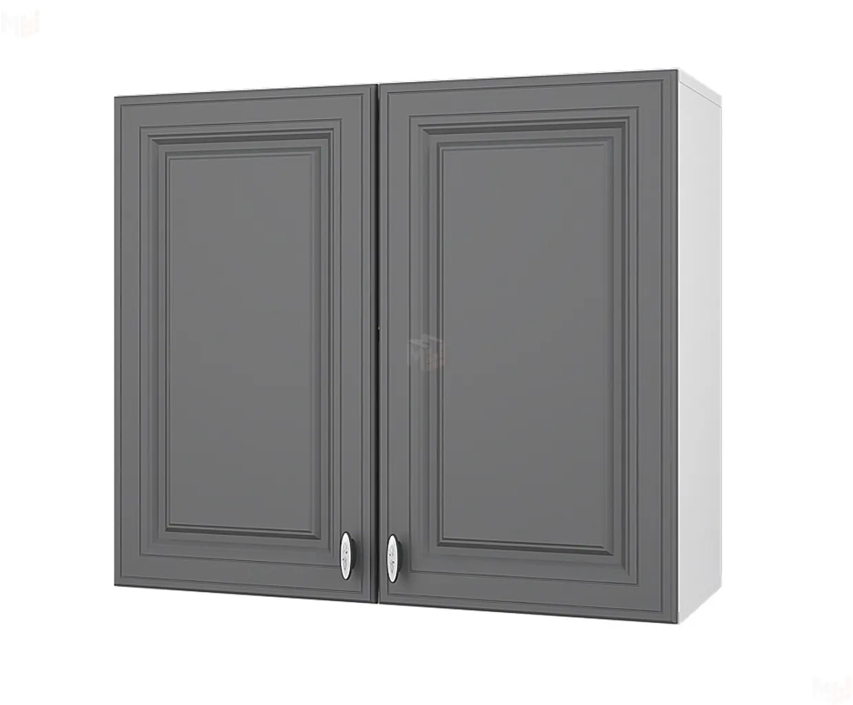 Шкаф кухонный шириной 80 см с распашными дверками. Внутри полка. Корпус ЛДСП белый, фасады МДФ софт.