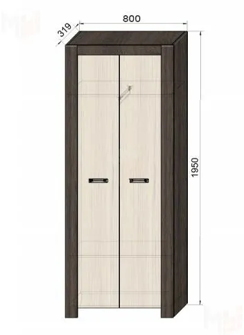 В конструкции двухдверного шкафа ФТ-05 предусмотрена полка сверху и полка снизу. Есть металлическая штанга для вешалок, направление вглубь.
