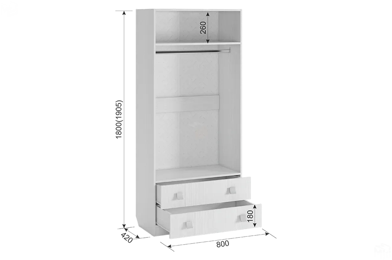 Ширина 800 мм, Глубина 420 мм, Высота 1910 мм