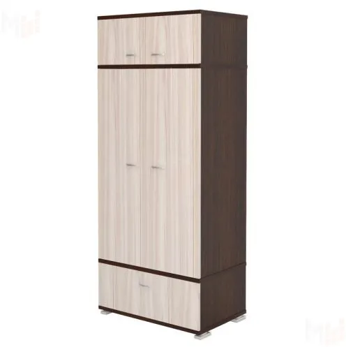 За левой дверцей располагается отсек со штангой для вешалок, за правой - полки для одежды.