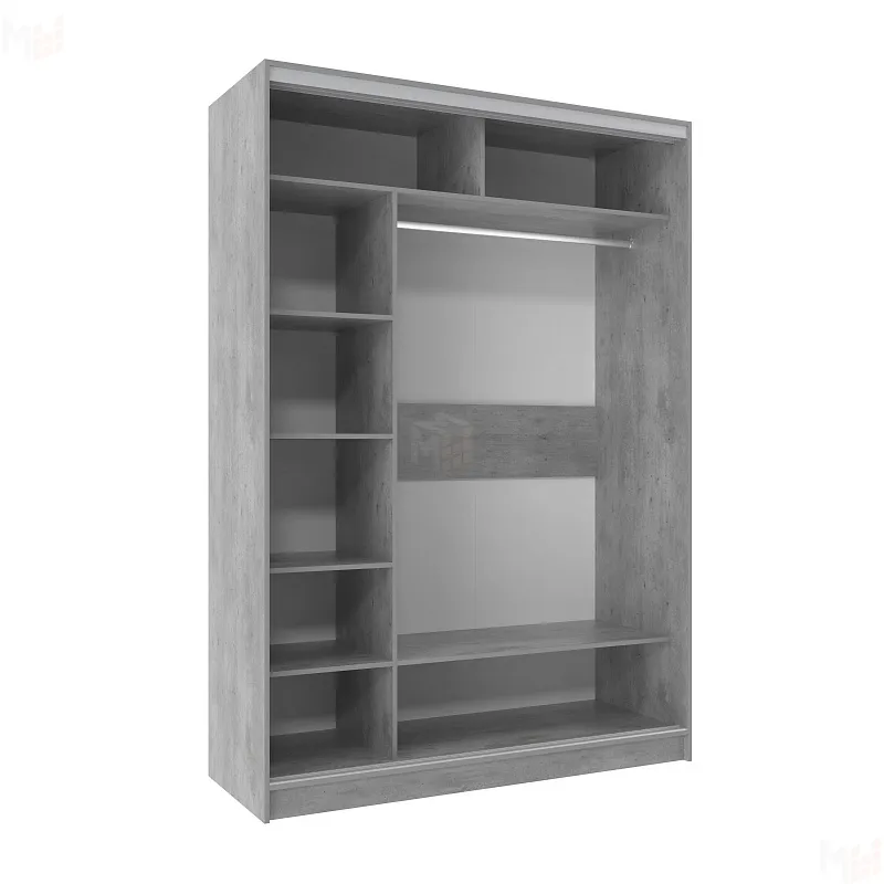 В шкафу-купе шириной 160 см найдется место для гардероба всей семьи. Разместите в нем бельё, верхнюю одежду и аксессуары. Продуманное внутреннее наполнение шкафа состоит из стеллажа для белья, четырех больших ниш внизу и вверху, а также стационарной штанги длиной больше метра. В шкафу-купе используется стальная система "Найди". Применяемый в ее изготовлении металл обеспечивает мебели необходимую прочность и долговечность. По краю дверей шкафа-купе защитная пленка препятствует повреждению красочного слоя металлического профиля. После установки шкафа ее можно удалить.