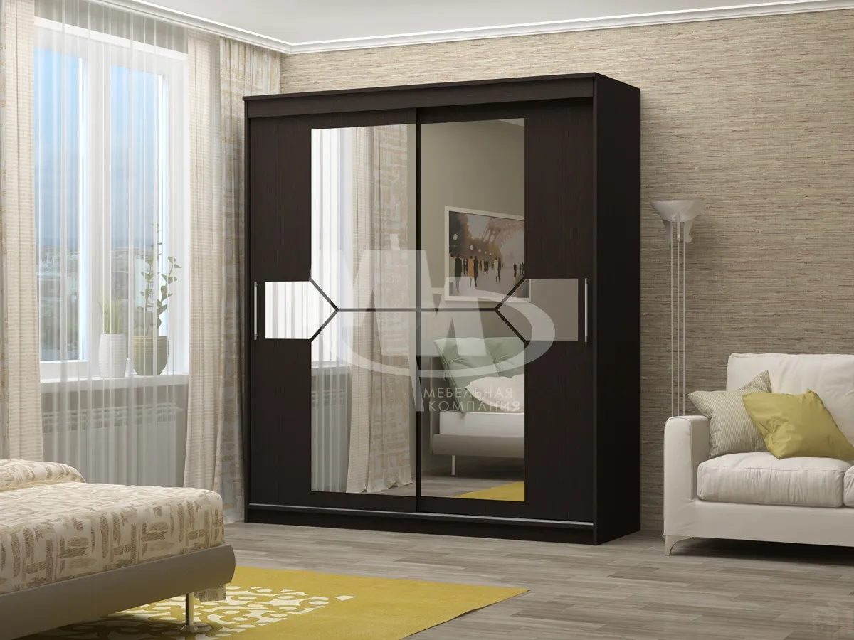 Оригинальный дизайн фасада делает эту модель весьма привлекательной. Зеркала скрадывают габариты шкафа, зрительно расширяют помещение.