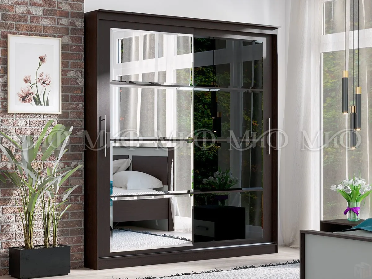 Шкаф-купе Элегант №7 декорирован зеркальными фасадами. Это настоящий шедевр дизайнерского исполнения мебели, идеально сочетающий в себе стекло и зеркало.