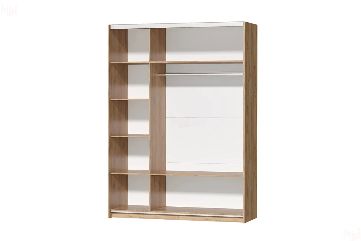 Внутреннее наполнение модели: слева - пять вместительных полок, справа - две полки и металлическая штанга для одежды.