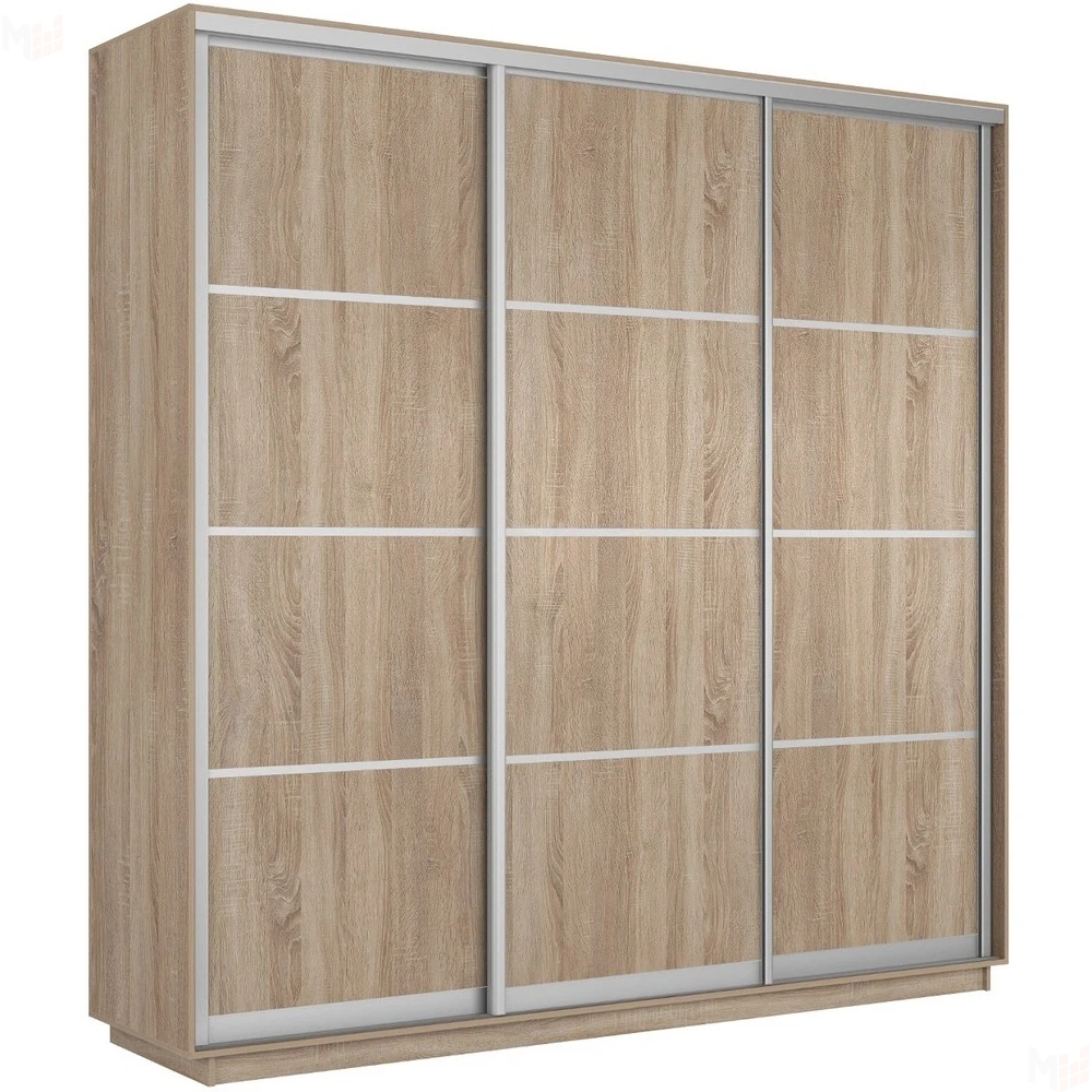Шкаф-купе Оптим 3-х дверный 1 секция (ЛДСП) 210 см. 2 штанги, 9 полок, 4 ящика