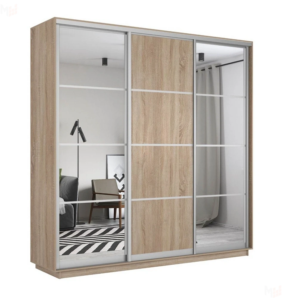Шкаф-купе Лоял 3-х дверный (Зеркало, ДСП) 210 см.