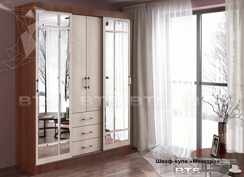 Шкаф-купе «Маэстро» — воплощение изыска современной корпусной мебели. Шкаф представляет собой сочетание функциональности и внешней эстетичности, стильного дизайна и лаконичного внешнего вида.