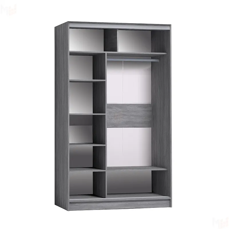 Продуманное внутреннее наполнение шкафа состоит из стеллажа для белья и стационарной штанги длиной 725 мм. На ней поместится как минимум 10 плечиков с верхней одеждой. В изготовлении шкафов-купе STRIKE использована прочная стальная система треков «Найди» цвета Металлик.