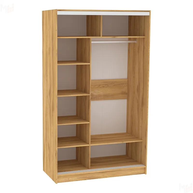 Двери шкафов дополнены ручками из массива и шлегелем, который смягчает удары дверей при закрывании, а также защищают вещи от попадания пыли. Благодаря скрытым полкодержателям полки жестко крепятся на необходимой высоте. -
