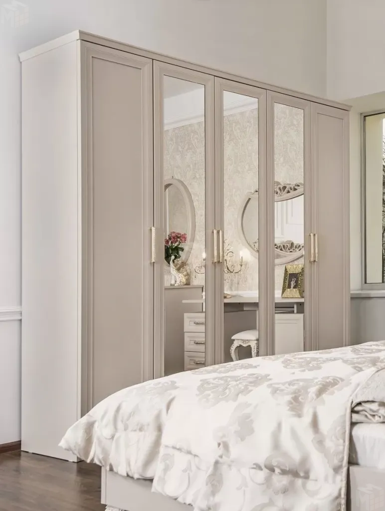 Шкаф Мокко 5-дверный с зеркалом бежевый