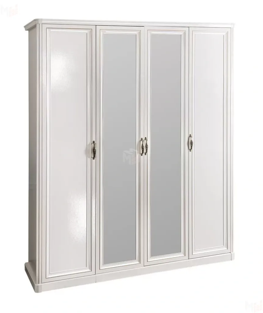 Шкаф Натали 4-дверный (1+2+1) с зеркалом белый глянец