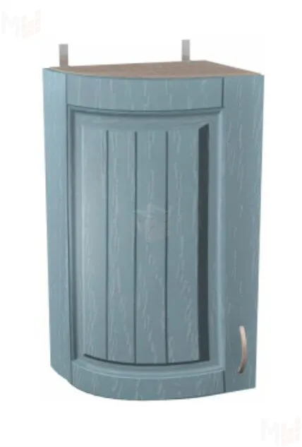 Навесной шкафчик с радиусным фасадом органично завершит кухонный гарнитур. Особенно хорошо он смотрится, если край кухни расположен торцом в открытое пространство дверного проема.