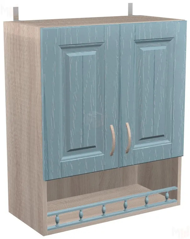 Просторный навесной шкаф с декоративной полочкой-нишей, оформленной балюстрадой порадует дизайном и функциональностью.