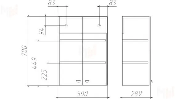 ширина 500 мм, глубина 289 мм, высота 700 мм