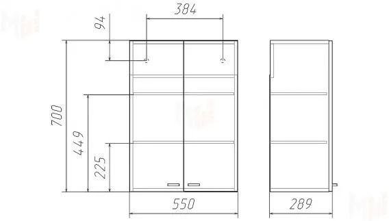 ширина 550 мм, глубина 289 мм, высота 700 мм