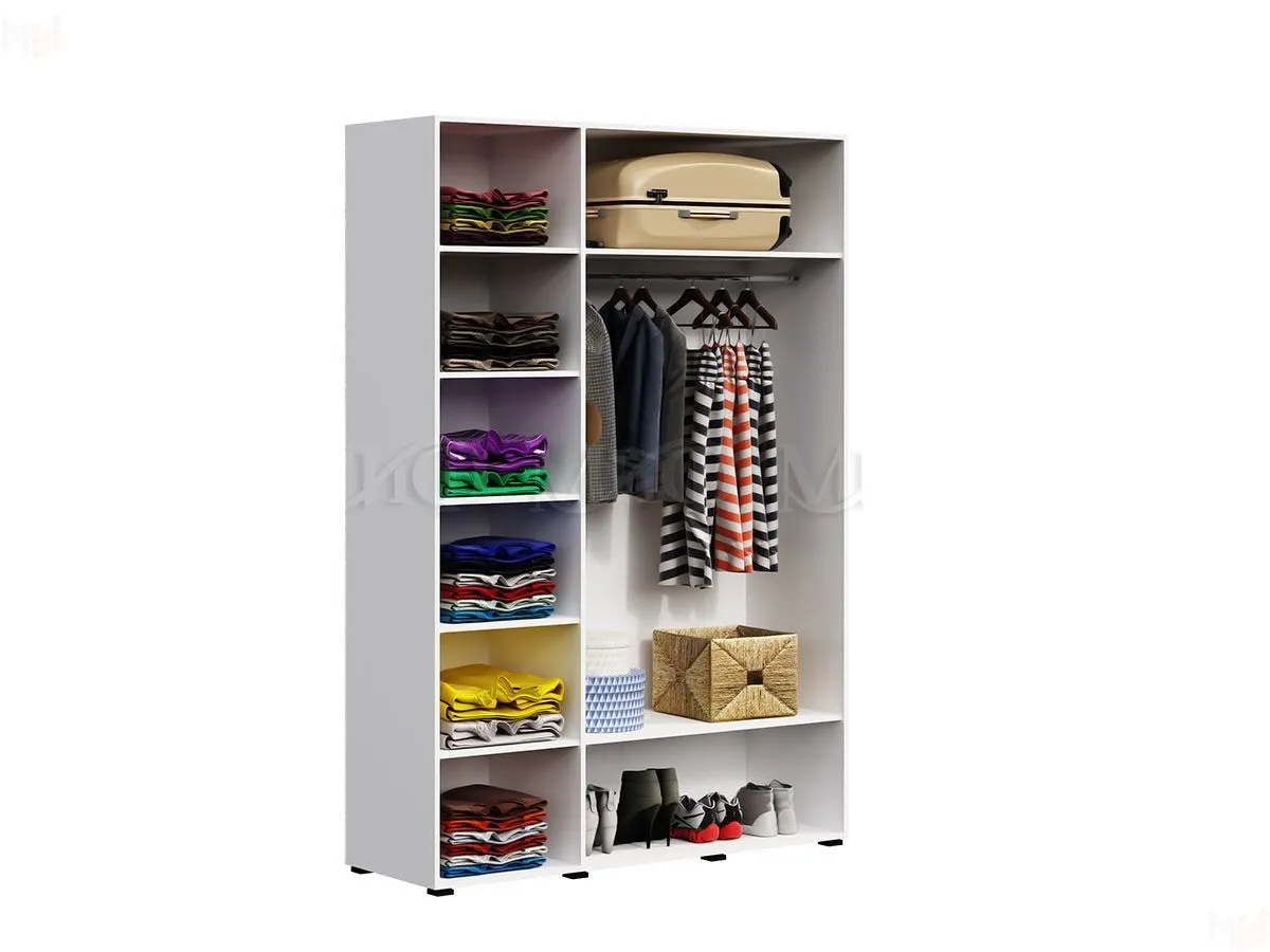 Слева расположены полки для белья, справа отделение со штангой для одежды. -
