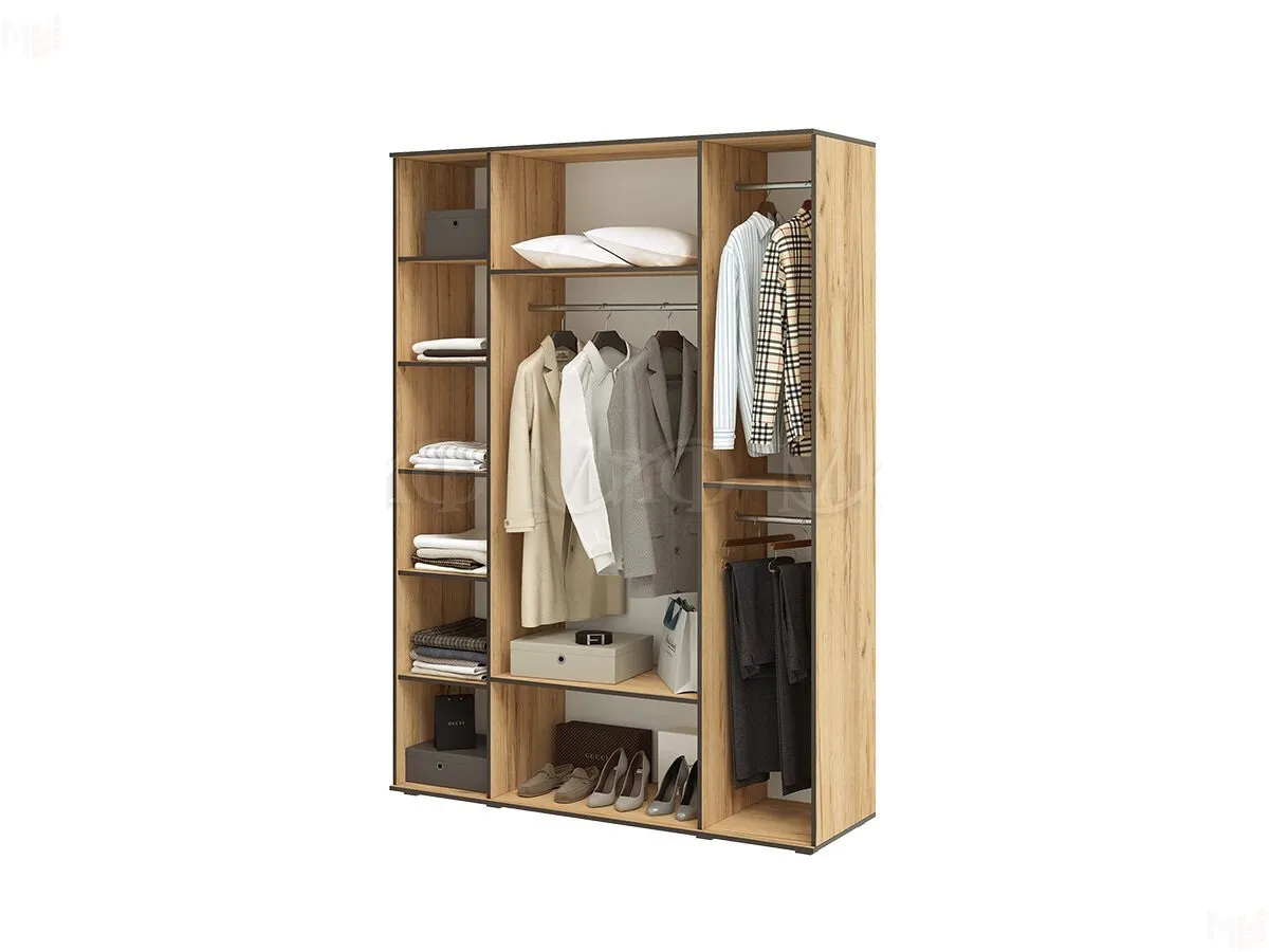 Наполнение шкафа - полки для белья, штанги для плечиков.