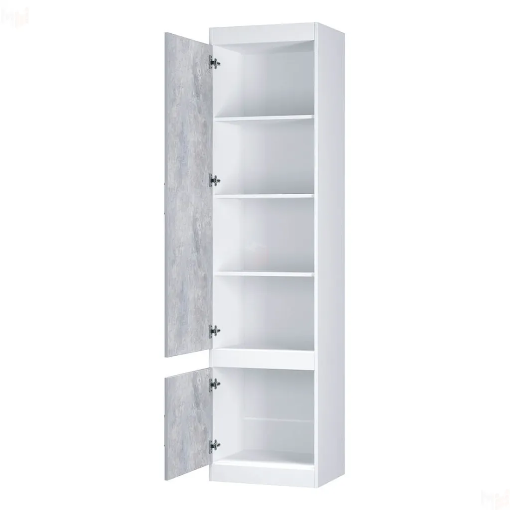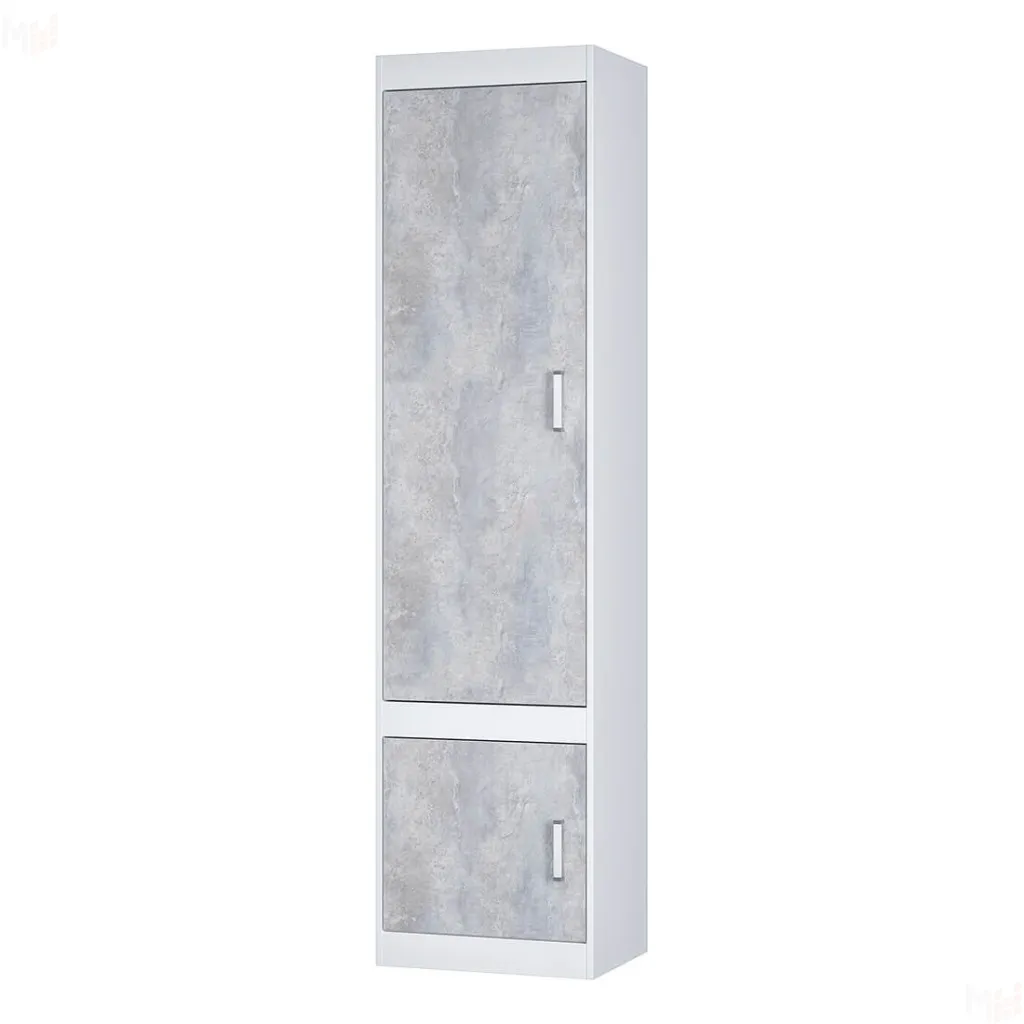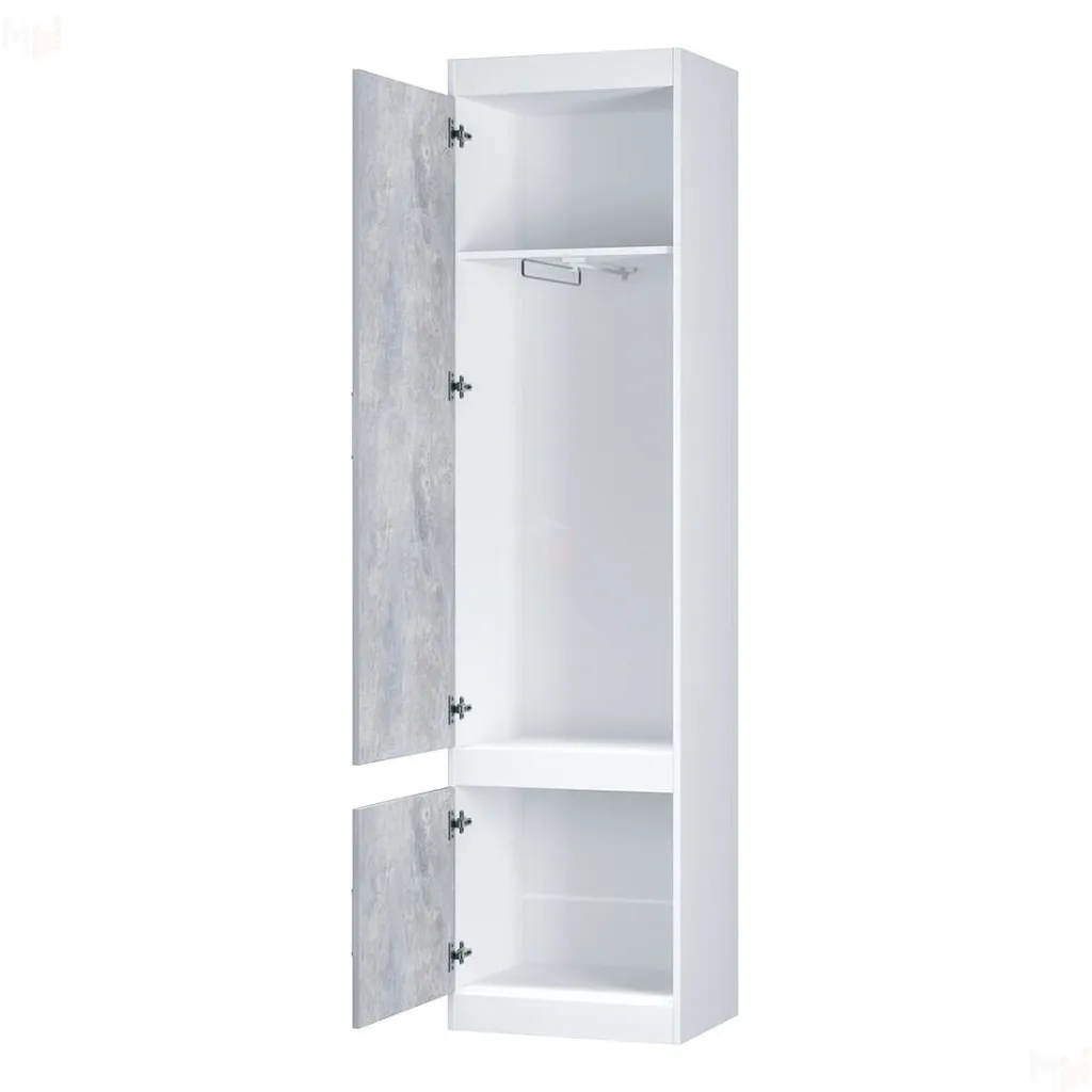 Изделие состоит из отделения с евроштангой и секцией для белья, модель выполнена в светлых цветах ЛДСП белый и цемент светлый, дополнена удобными ручками.