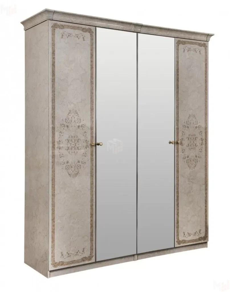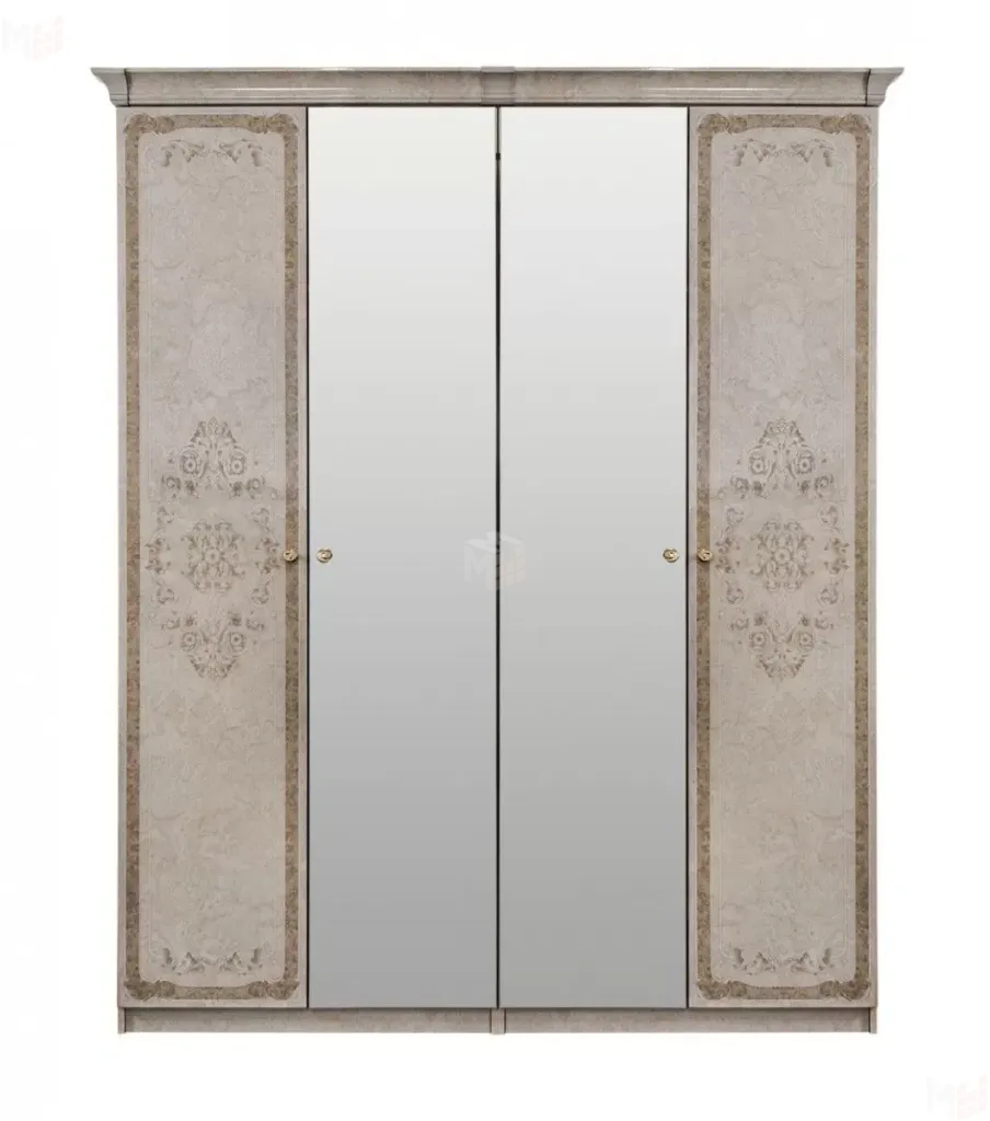 Шкаф Патрисия 4-дверный (1+2+1) с зеркалом крем корень глянец