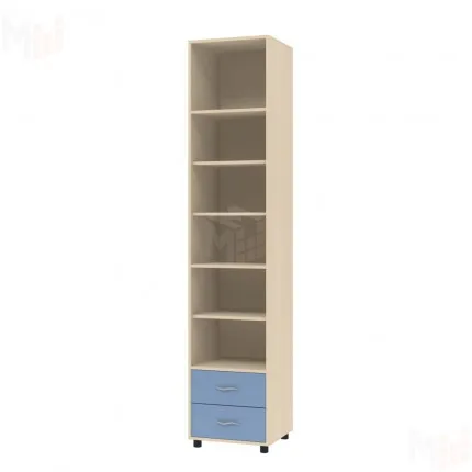Шкаф-пенал Дельта - 12 представляет собой удобный элемент мебели для хранения вещей. Включает в себя 5 открытых полок и 2 вместительных выдвижных ящика. Шкаф установлен на регулируемых опорах.