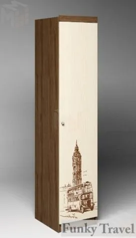 Шкаф-пенал детский Фанки Тревел. На фасаде двери нанесена фотопечать с изображением главных достопримечательностей Лондона - Биг Бена и двухъярусного автобуса.