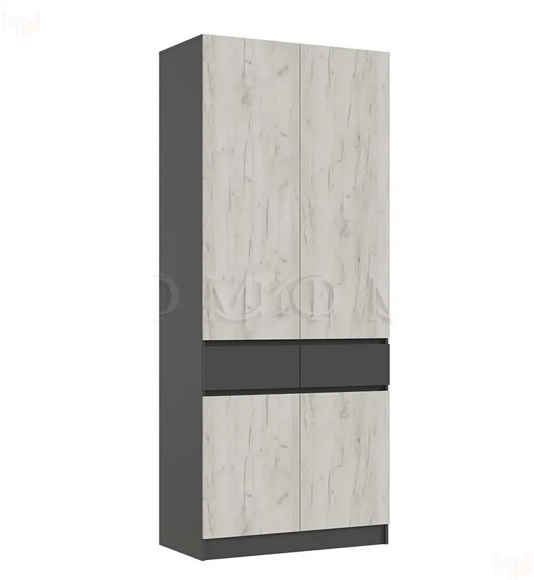 Корпус шкафа выполнен из ЛДСП Графит, фасады ЛДСП Крафт белый. -