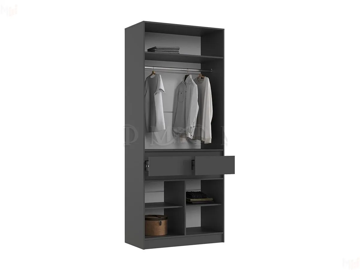 Этот высокий, вместительный и в то же время компактный шкаф будет великолепно смотреться в тандеме с прихожей Роджина. Помимо объемного отсека под одежду с металлической штангой, в шкафу Роджина предусмотрено два удобных выдвижных ящика на шариковых направляющих, а также четыре полки небольшого размера и большая верхняя полка-антресоль.