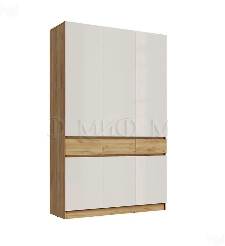 Корпус шкафа выполнен из ЛДСП Крафт золотой, фасады ЛДСП Белый глянец. -