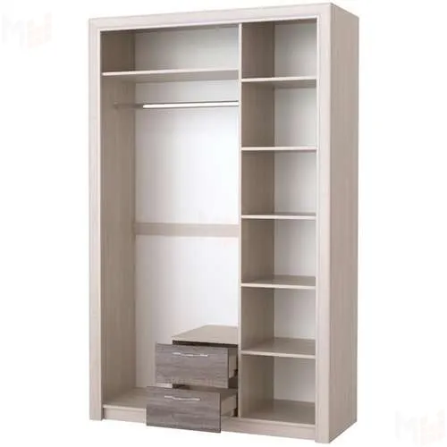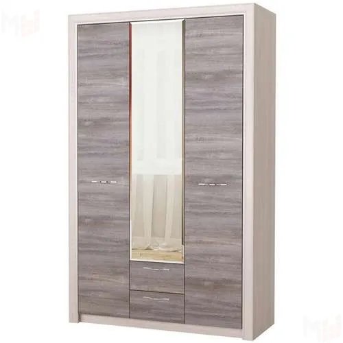 Шкаф 3С2Я "Октава" 3-створчатый с зеркалом и ящиками, с полками для белья и поперечной металлической штангой для верхней одежды. Устанавливается стильная металлическая ручка, декор "тёмный никель". Периметр шкафа обрамлён профилем MDF оригинальной формы с патиной (окраской фасок) серебристого цвета. Направляющие шариковые, полного выдвижения. Зеркало выполнено с изящной и красивой обработкой "фацет" по периметру.