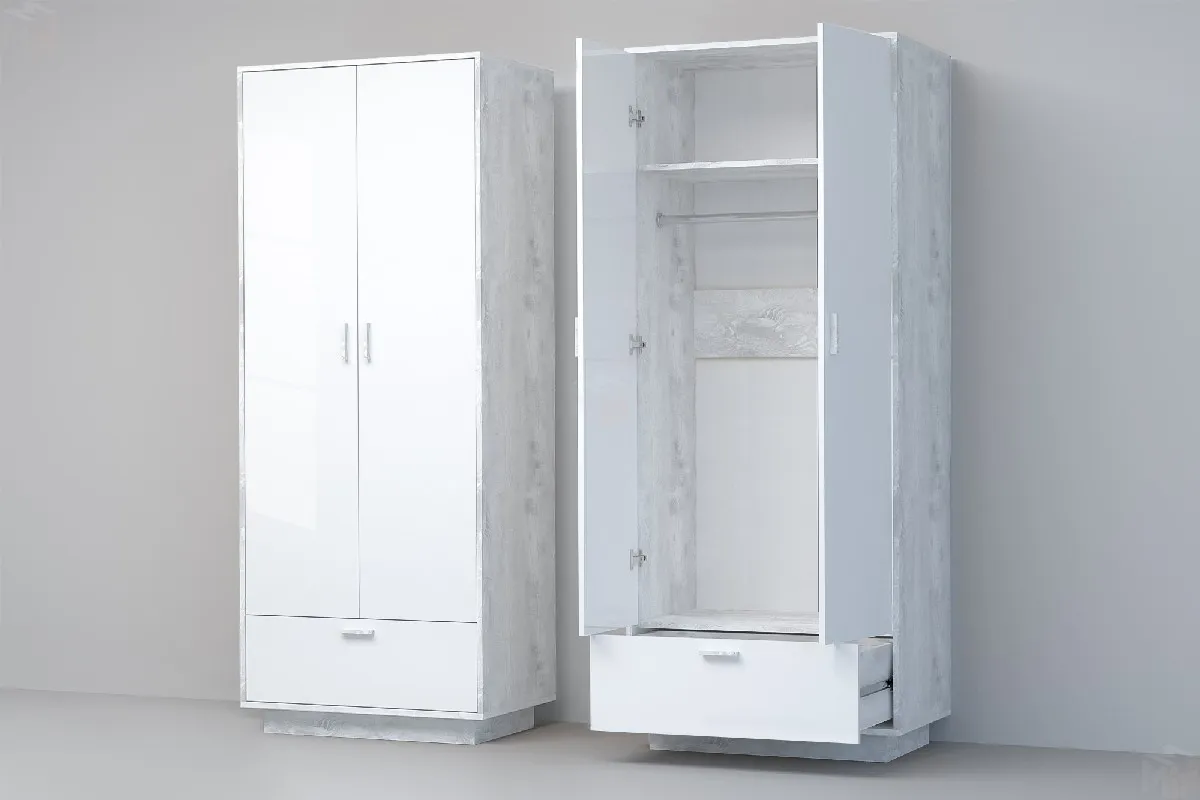 Шкаф ШК-1 ПД Эго Бетон Светлый/Белый Глянец