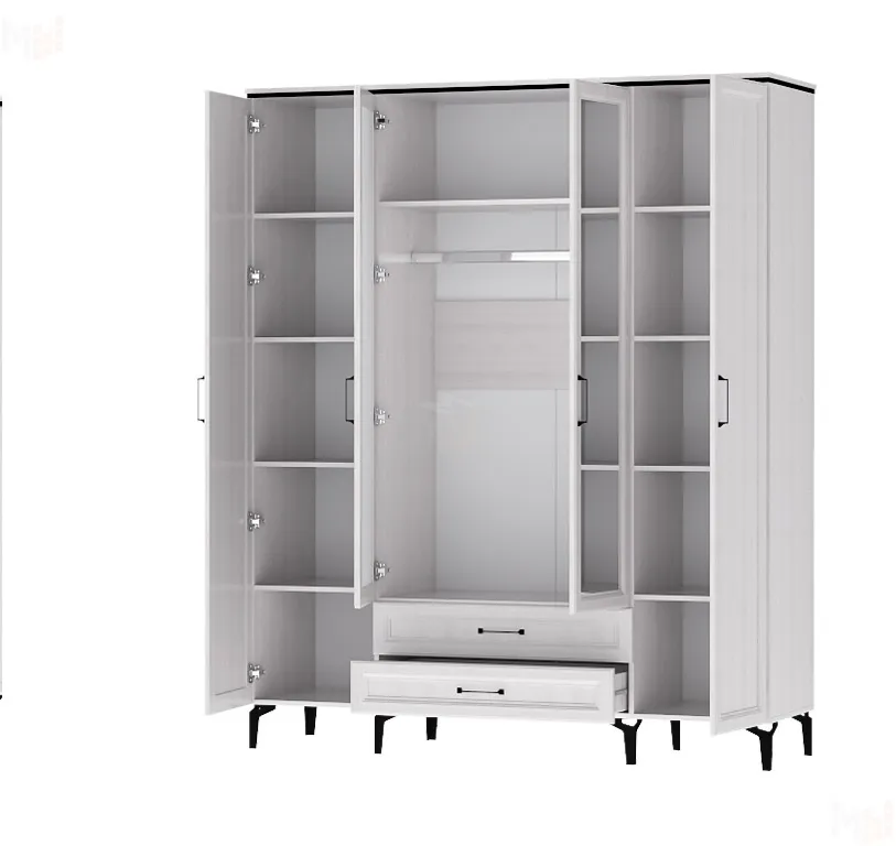 Функциональный, удобный, вместительный четырёхстворчатый шкаф способен прекрасно дополнить и даже украсить собой любой интерьер. В нём легко спрячется от посторонних глаз большое количество вещей (текстиль, постельное бельё, трикотаж), и все они будут храниться в идеальном порядке.