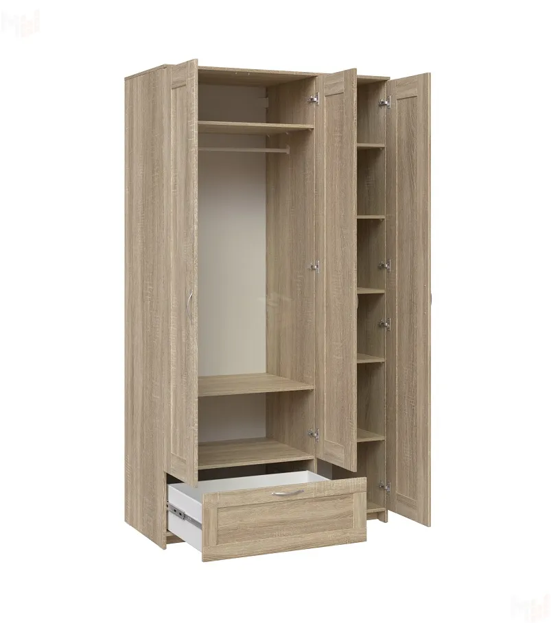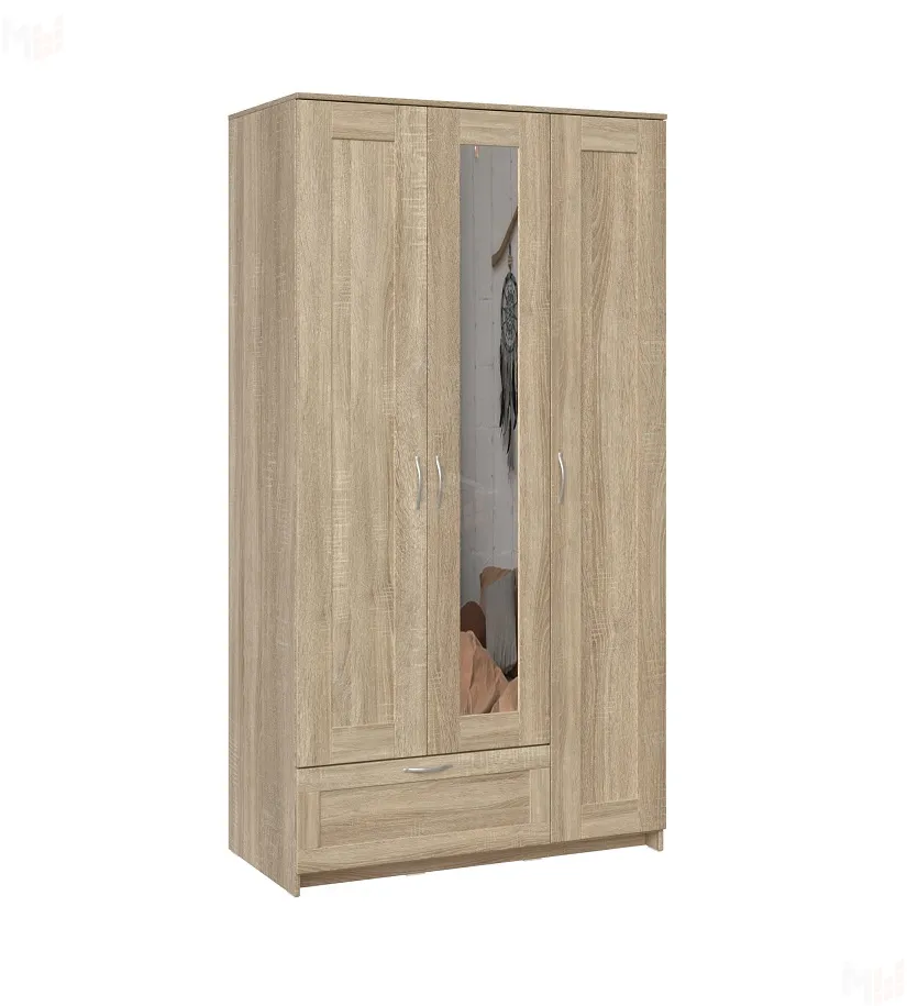 Шкаф Сириус 3 двери с зеркалом 1 ящик, сонома (высота 220 см)