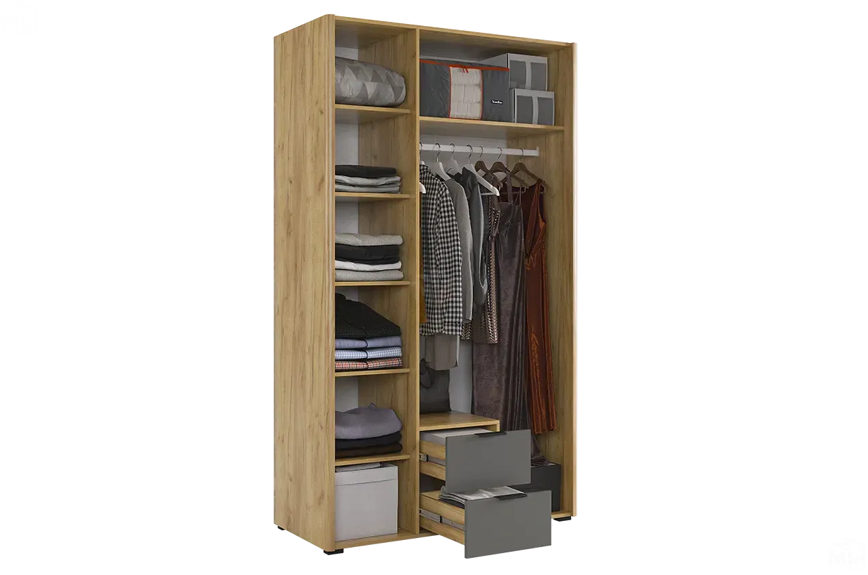 Шкаф трехдверный Адам с зеркалом дуб крафт золотой/графит