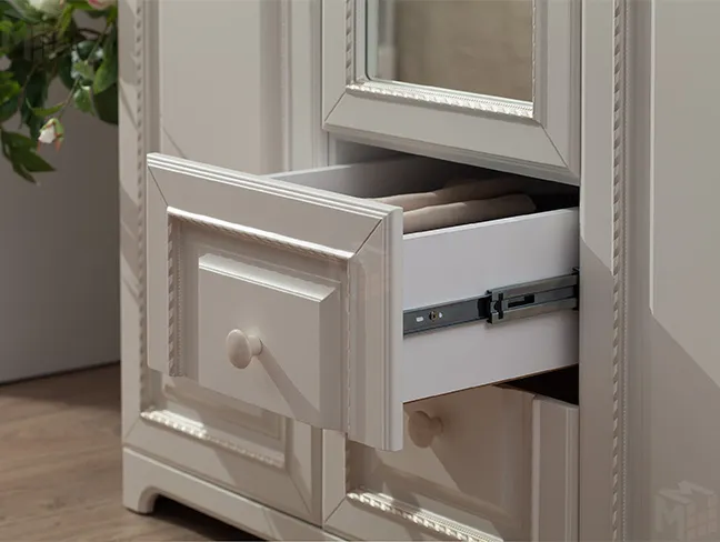 Нет ничего лучше, чем сочетание красоты и практичности. 3-створчатый шкаф «Белла» тому доказательство. Фасады шкафа выполнены в нежном оттенке джелато, дверцы украшены фрезеровкой, а ручки – декоративными кистями. Центральный отсек шкафа оснащен полками, а боковые – штангами для одежды. Выдвижные ящики прекрасно подойдут для хранения вещей.