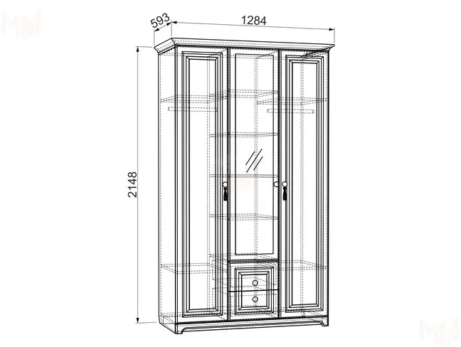 Ширина 1284 мм, Глубина 593 мм, Высота 2148 мм