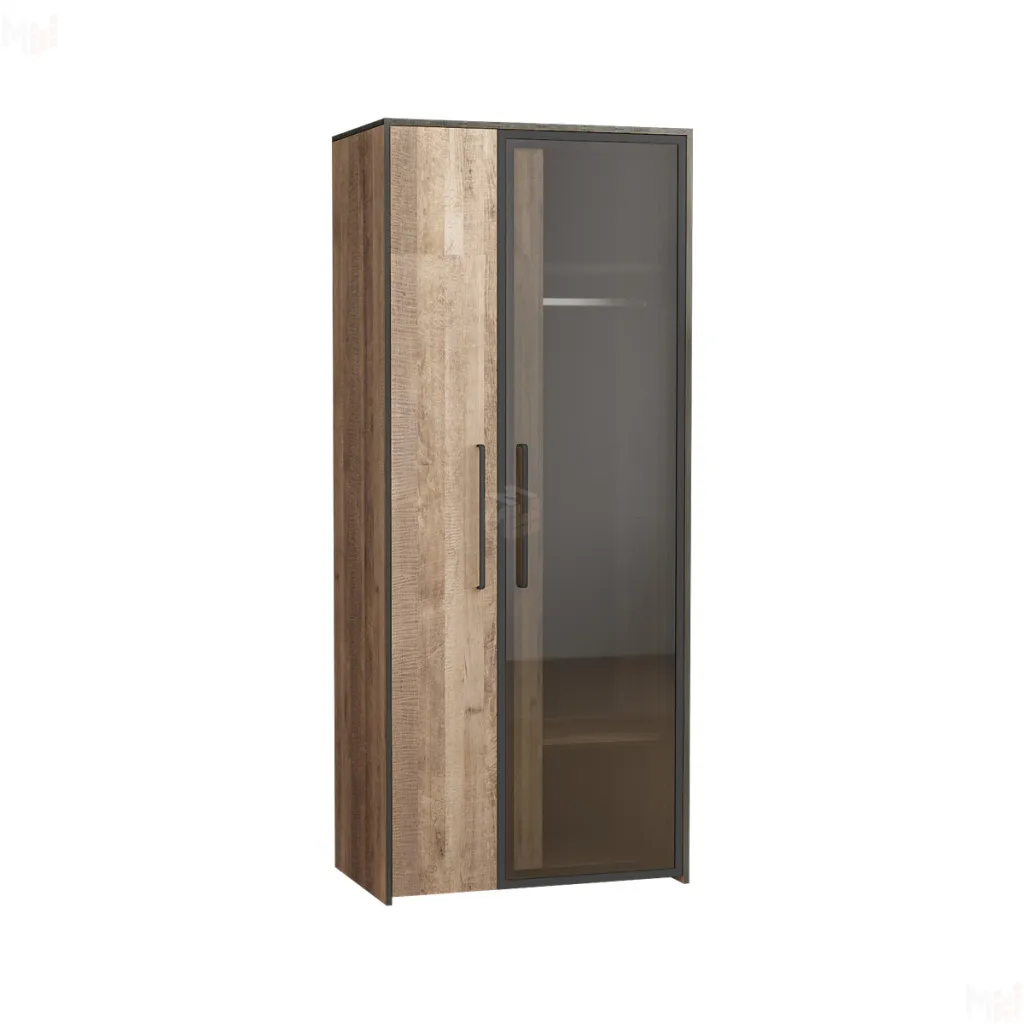 Шкаф Трувор 13.204 предоставит достаточно места для размещения и бережного хранения вашего гардероба. За распашными дверьми находится штанга для вешалок-плечиков с верхней одеждой. Полки, скрытые в левой части, пригодятся для аккуратного размещения сложенной одежды, различных аксессуаров и коробок с обувью. Индустриальная мебель Трувор выполнена в стиле лофт.