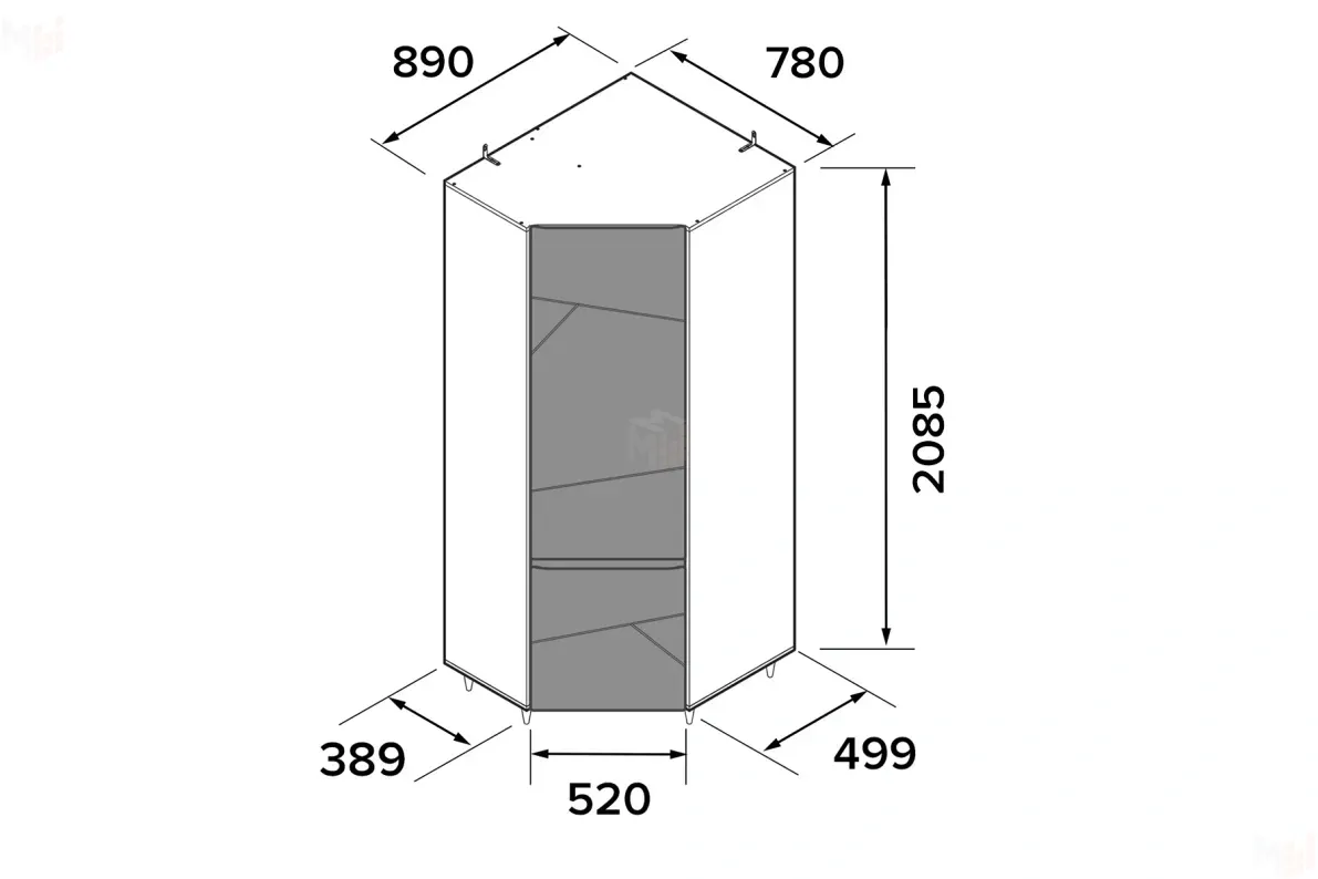 Размер (Ш*В*Г): 890 x 2085 x 780 мм
