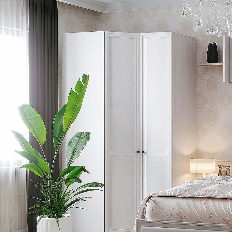 Отлично организовать пространство в маленькой спальне поможет угловой шкаф. Стационарная штанга длиной 819 мм и полноценный стеллаж для белья внутри способствуют аккуратной организации вещей. Шкаф комплектуется Фасадом Зеркало или Фасадом Стандарт. Оба Фасада декорированы маленькими металлическими ручками и обрамлены профилем МДФ. Угловой шкаф PAOLA 156 оснащен беспроводным светодиодным светильником, который включается при открывании двери. Это особенно удобно, если нужно найти в шкафу вещи, не потревожив близких. Легкая установка на магнитное крепление - не требует сверления, прокладывания провода, подключения к сети. Шкаф обязательно крепится к стене на подвесы, а компенсировать неровности пола можно, благодаря регулируемым опорам.