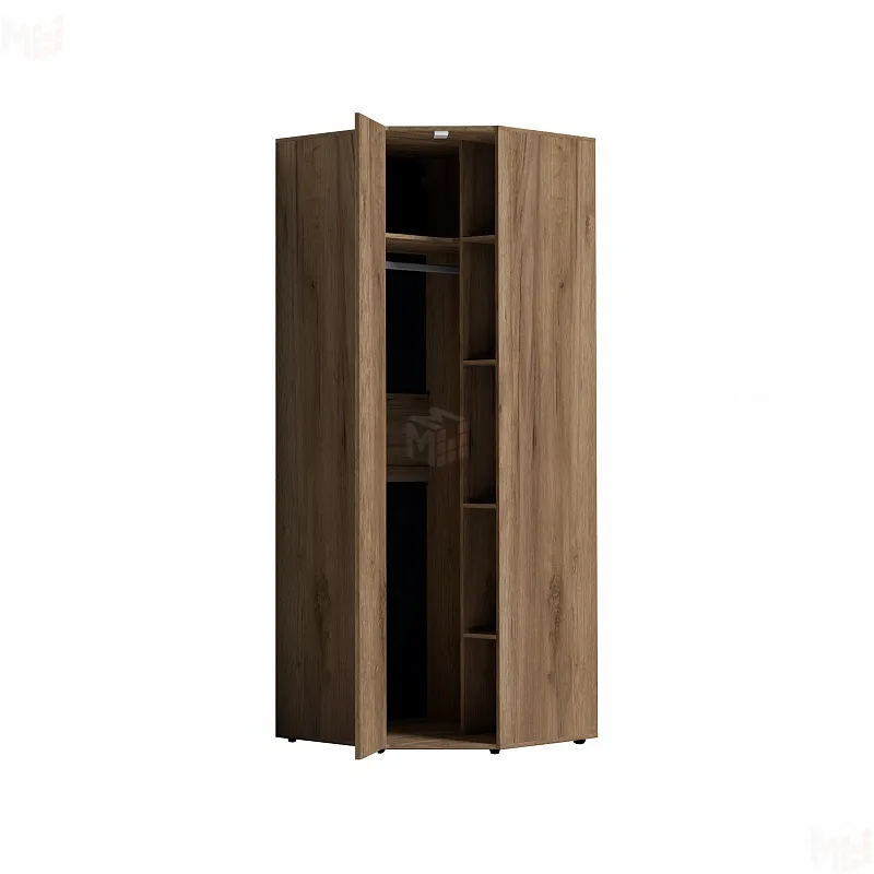 Эффективно организовать пространство в маленькой спальне поможет угловой шкаф. Стационарная штанга длиной 814 мм и полноценный стеллаж для белья внутри способствуют аккуратной организации вещей. Гладкие фасады и натуральный декор шкафа привнесут в комнату уют и теплоту. Шкаф оснащен беспроводным светодиодным светильником, который включается при открывании двери. Это особенно удобно, если нужно найти в шкафу вещи, не потревожив близких. Легкая установка на магнитное крепление не требует дополнительного сверления, прокладывания провода, подключения к сети. Регулируемые опоры компенсируют неровности пола. Шкаф необходимо обязательно крепить к стене на подвесы!