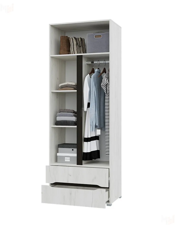 Наполнение шкафа - полки для белья, штанга для одежды.