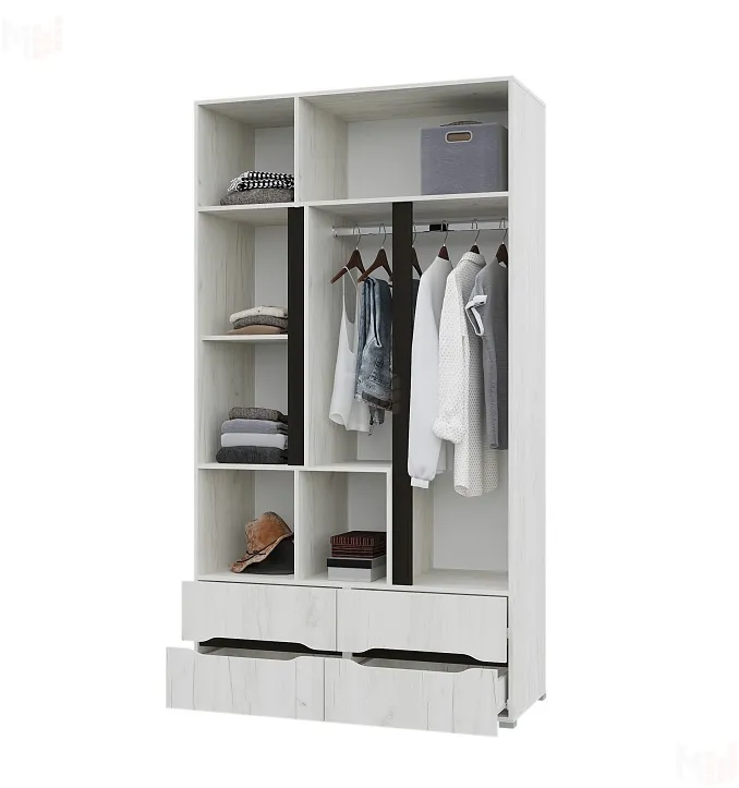 Наполнение шкафа - полки для белья, штанга для одежды.