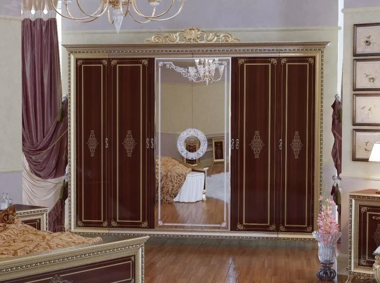 - Очень вместительный, удобный и помпезный шкаф, созданный для королевской спальни, поражает функциональностью и великолепием.