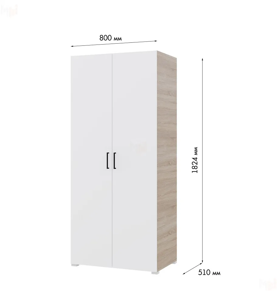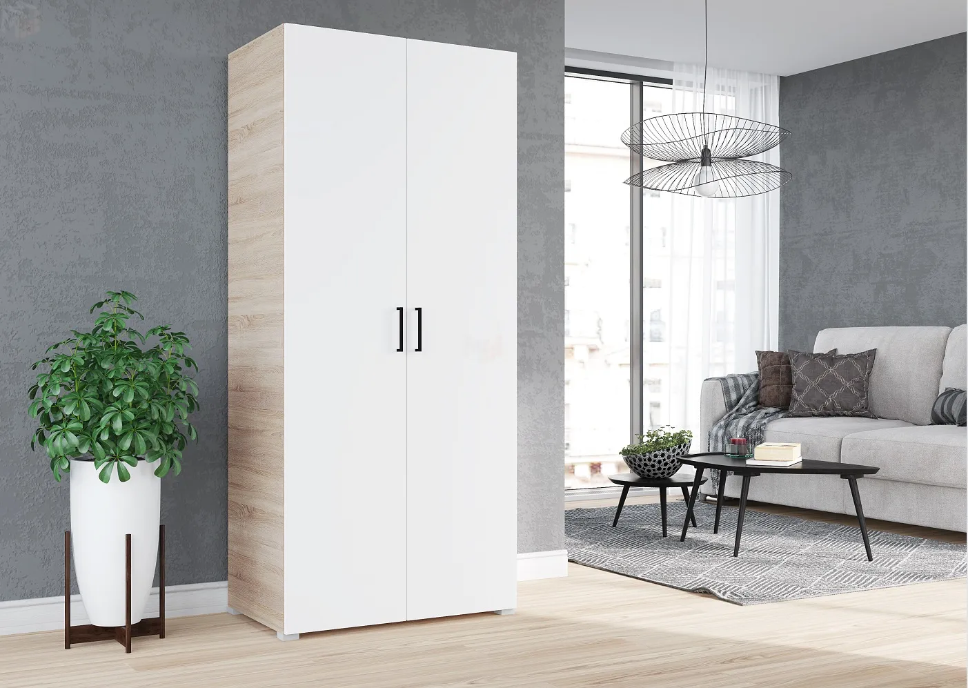 Шкаф 2-х створчатый Виктор выполнен из ЛДСП дуб сонома/белый.