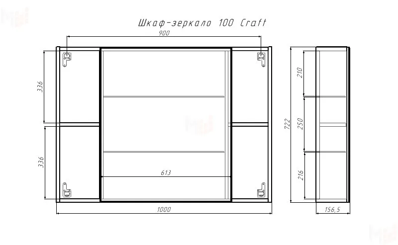 Шкаф-зеркало Craft 100 левый/правый Домино