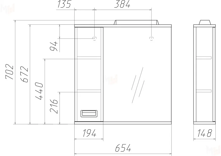 Шкаф-зеркало Cube 65 Эл. левый/правый Домино.