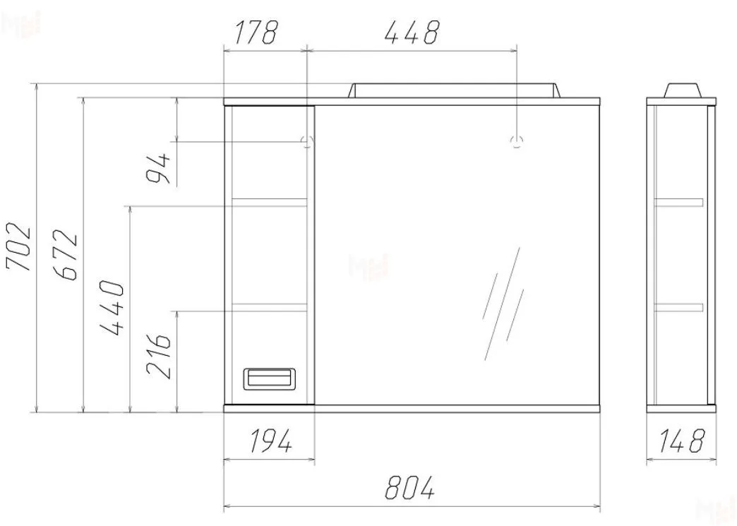 Шкаф-зеркало Cube 80 Эл. левый/правый Домино