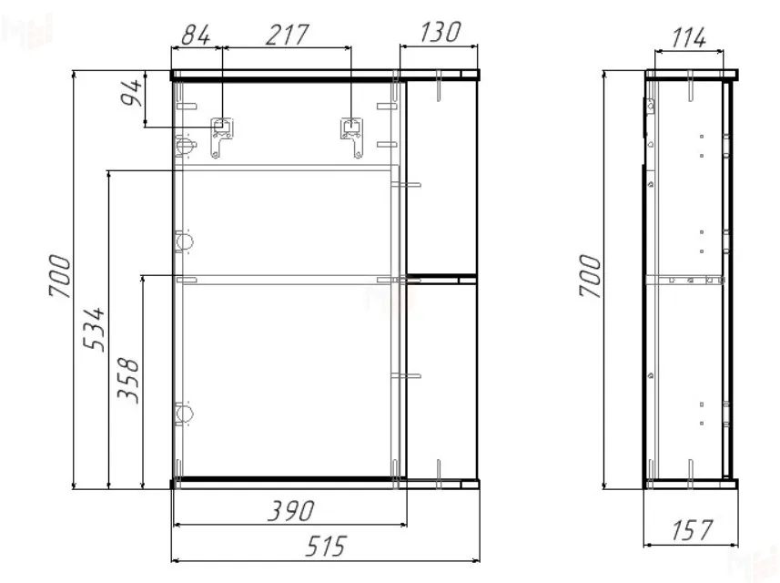 Материал корпуса: ЛДСП, МДФ, пленка ПВХ, зеркало.